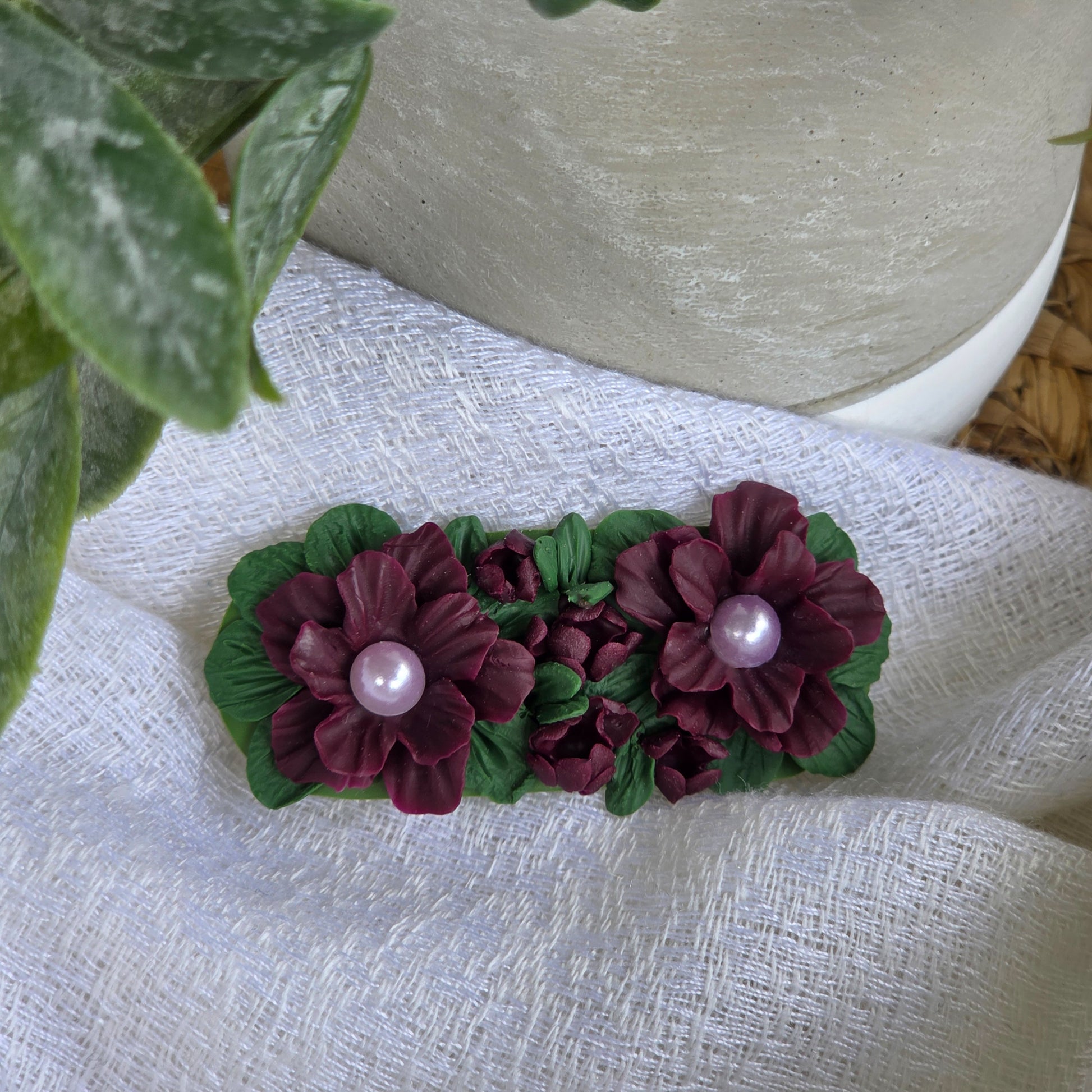 Barrette avec clip française fait en pâte polymère.