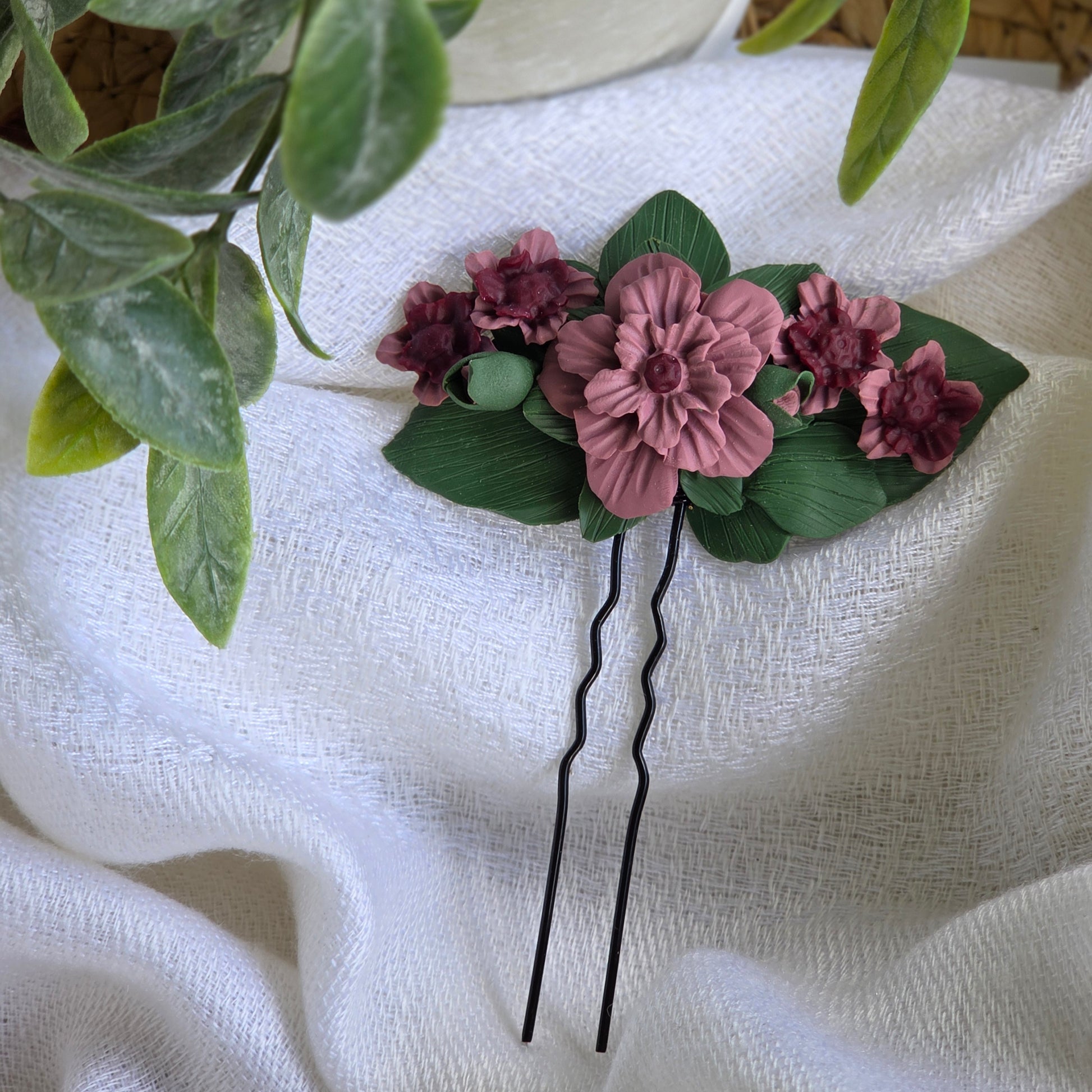 Épingles à cheveux en pâte polymère.