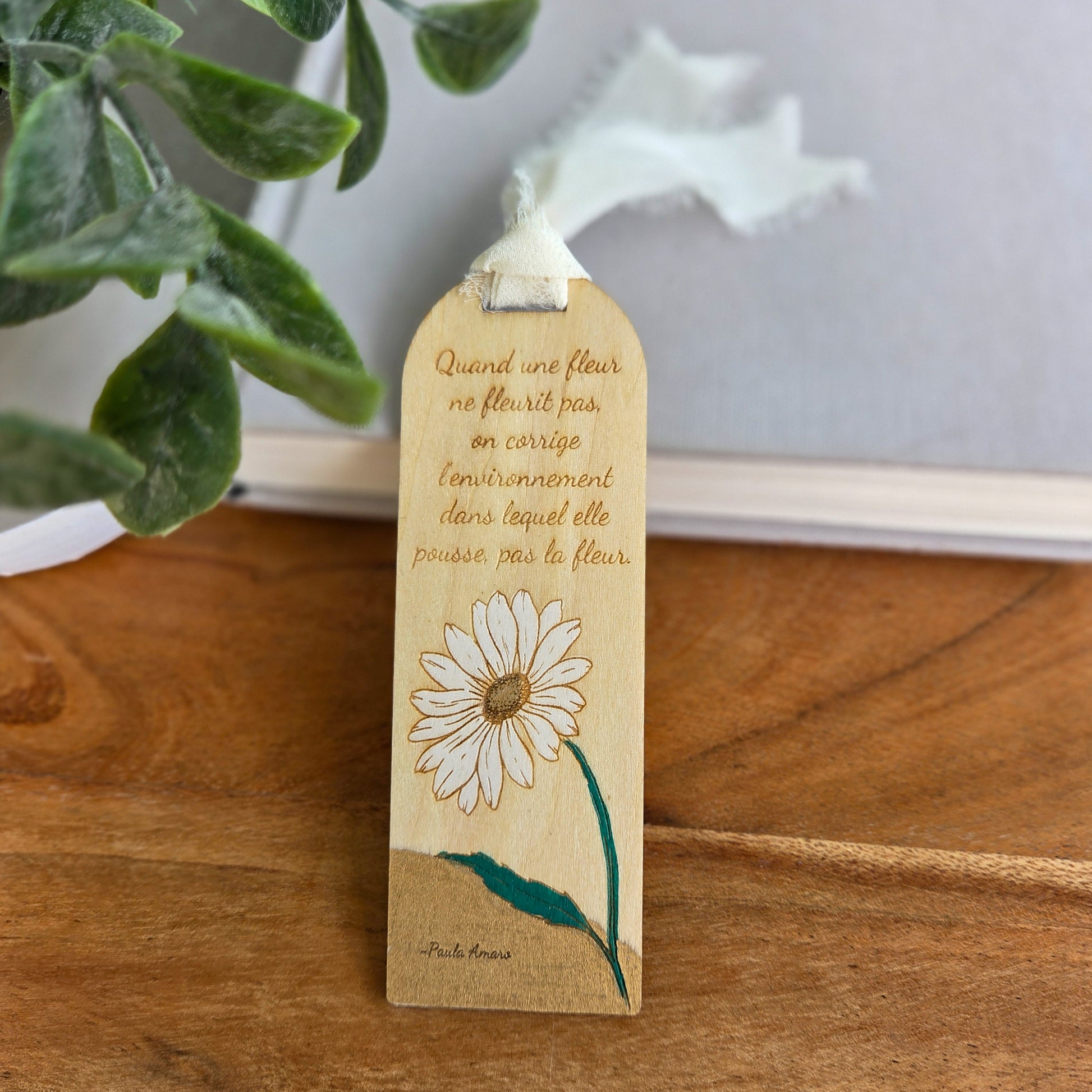 Marque-page en bois, gravé au laser et peinturer à la main. Vernis pour durabilité.