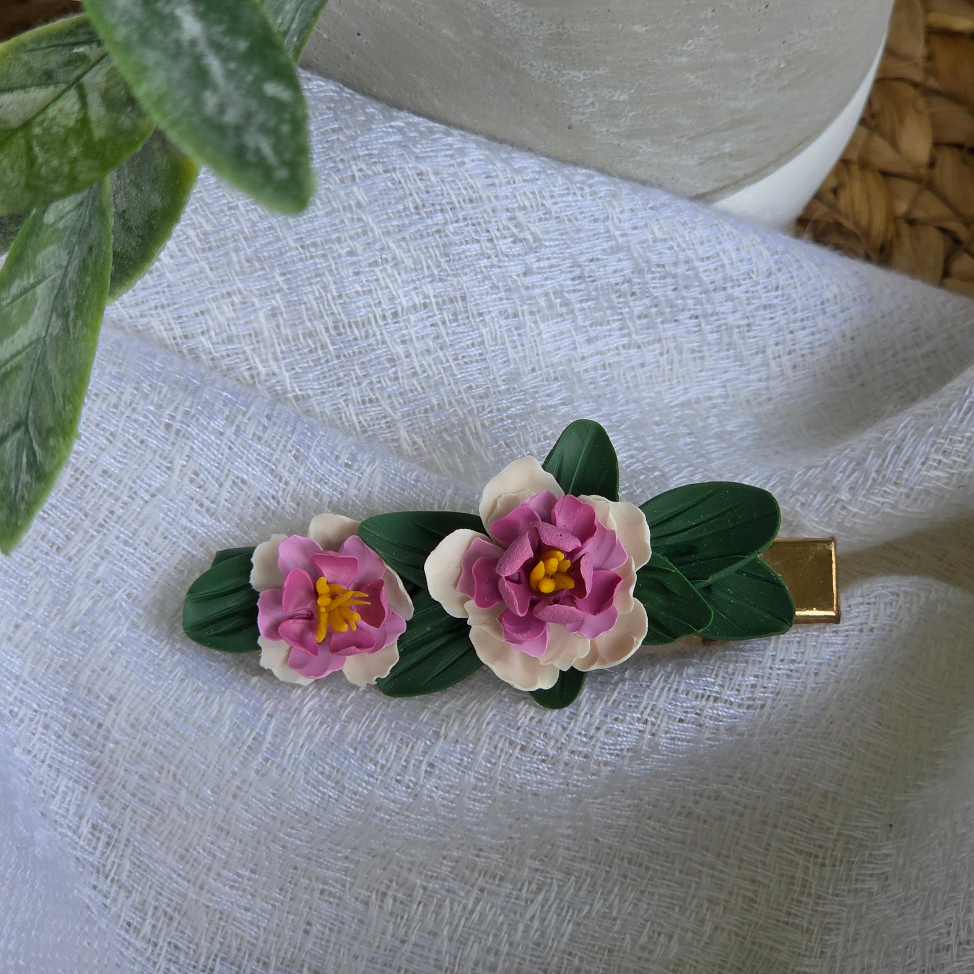 Pinces à cheveux en pâte polymère.