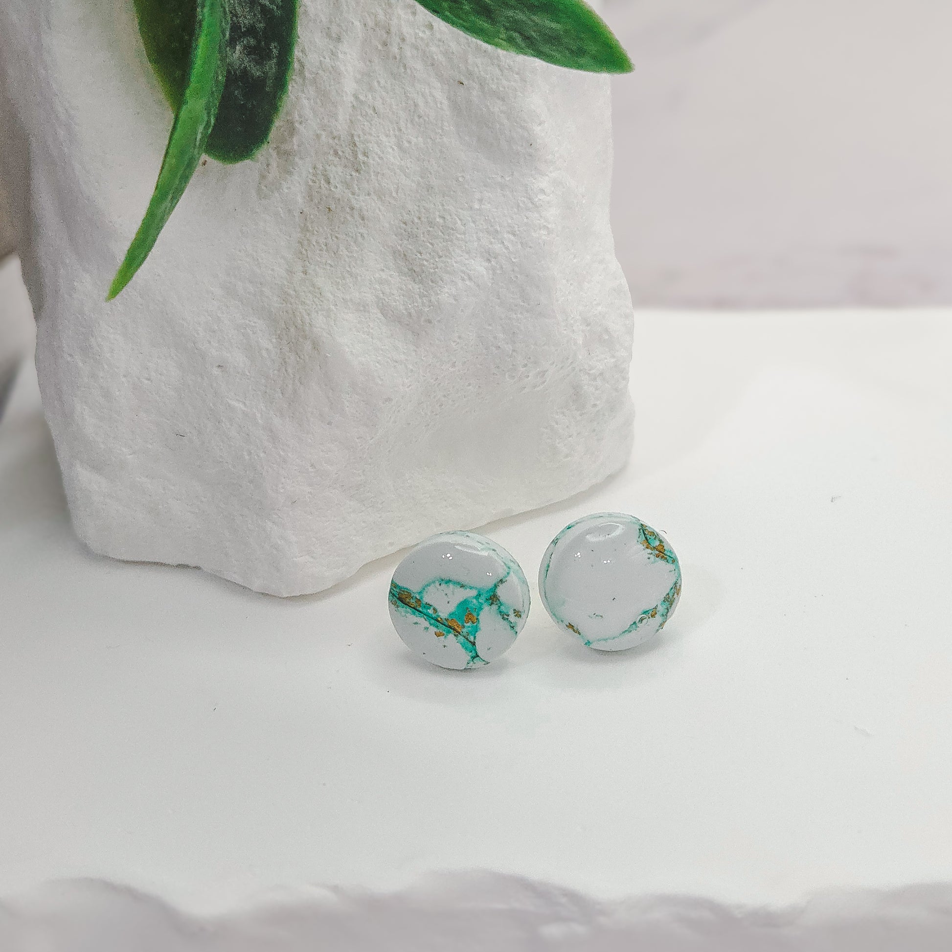 Boucles d'oreilles en pâte polymère marbré.
